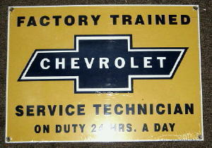 FACTORY TRAINED CHEVROLET PORCELAIN METAL SIGN NR