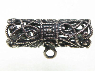 ANTIQUE? VINTAGE WHITE METAL FILIGREE BROOCH WITH DANGLING BAIL