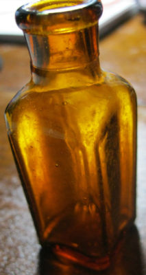 OLD VTG APOTHECARY MEDICINE COSMETIC AMBER GLASS BOTTLE #256