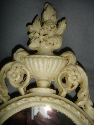 vintage antique Bone or Celluloid Carved Ornate Mirror