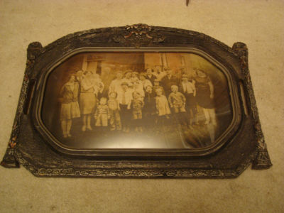 ANTIQUE CONVEX PICTURE FRAME WITH CURVED GLASS & OLD FAMILY PHOTO
