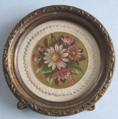 Title (ebay affiliate link): Victorian c1890 MINIATURE Round Brass Frame w Easel 1 3/4" FLOWERS Scrap * DOLL