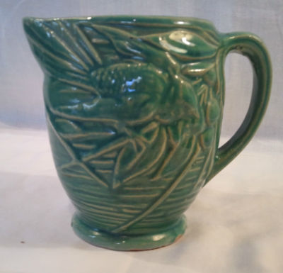 Title (ebay affiliate link): Antique Green/Yellowware Stoneware Bird & Cherries Pitcher