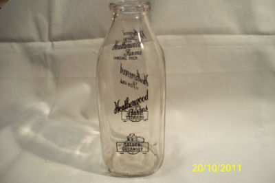 Title (ebay affiliate link): Glass 1 Qt. Milk bottle Heatherwood Farms Lansing, Michigan