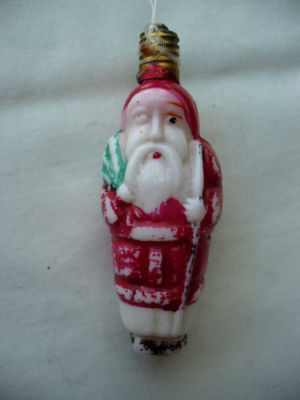 Old Christmas MILK GLASS Double Sided Santa LIGHT BULB
