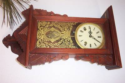 ANTIQUE WALL KITCHEN CLOCK W/ ORNATE BRASS PENDULUM