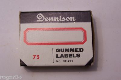 Title (ebay affiliate link): Vintage Dennison 30 - 261 Gummed red & white labels white black box 70 +