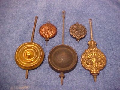 Title (ebay affiliate link): 5 ANTIQUE CLOCK PENDULUMS & BOBS PAT. 1877 + No. 7 + 3
