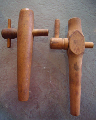 TWO VINTAGE ANTIQUE WOODEN BEER TAPS OAK?