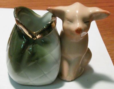 EARLY VINTAGE GERMAN PINK PIG BESIDE A SATCHEL, LOT F, LOOK!!