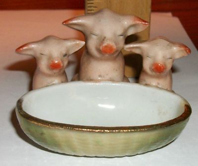 Title (ebay affiliate link): EARLY VINTAGE GERMAN THREE PINK PIGS AT A FEEDING TROUGH, LOT G, PITTSBURG, PA.