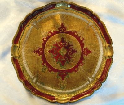 Vintage Ornate Florentine Italy Tole Tray Red Gold Large