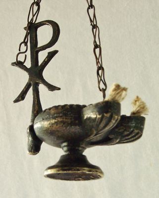Title (ebay affiliate link): 18th Century Crusie/ Betty Type Double Burner "Chi-Rho" Canting Lamp