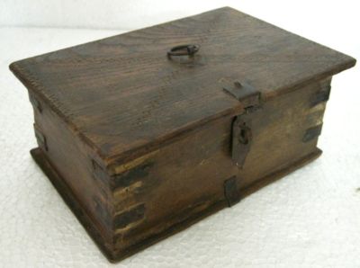 1800's Original Antique Hand Crafted Wooden Indian Money Bank Cash Chest Box