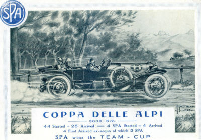 Automobile Sales Brochure - Coppa Delle Alpi, SPA, Italy. Circa 1923.