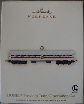 Title (ebay affiliate link): HALLMARK KEEPSAKE LIONEL FREEDOM TRAIN OBSERVATION CAR CHRISTMAS ORNAMENT 2007