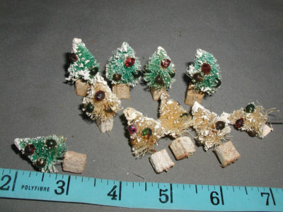 Title (ebay affiliate link): Lot of 10 Miniature Bottle Brush Christmas Trees Green & White with ornaments