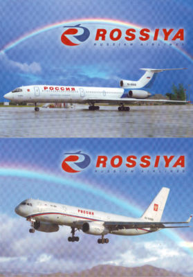 2 postcards Rossyia Russian Airlines airline issued Tupolev