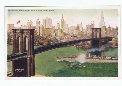 Title (ebay affiliate link): WARSHIP UNDER BROOKLYN BRIDGE/EAST RIVER, NEW YORK, 1930, old postcard
