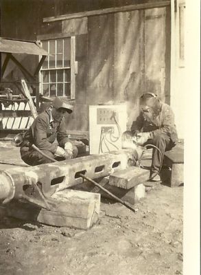 TWO MEN WELDING WORKING IN GARAGE EARLY 1900'S 30'S 40'S 3.5X3 vtg Real Photo
