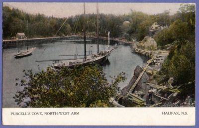 Title (ebay affiliate link): Nova Scotia PC Purcell's Cove, North-West Arm, Halifax, Sailing Vessels S/R 1906