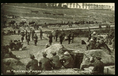 Title (ebay affiliate link): WW1 DAILY MAIL Postcard Blackwatch Highland Pipers At Longueval VIII-58
