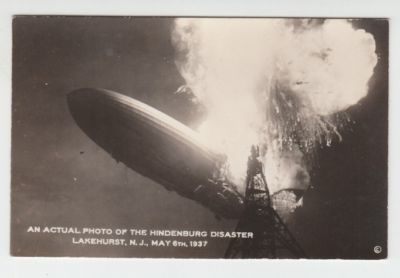 [24704] OLD POSTCARD ACTUAL PHOTO OF HINDENBURG DISASTER, LAKEHURST, NEW JERSEY