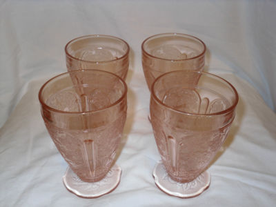 Title (ebay affiliate link): CHERRY BLOSSOM Vintage Pink Depression Glass Four (4) Tumblers 4 1/2" x 3"