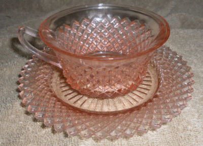 Title (ebay affiliate link): Depression Glass Anchor Hocking MISS AMERICA PINK Cup & Saucer Set