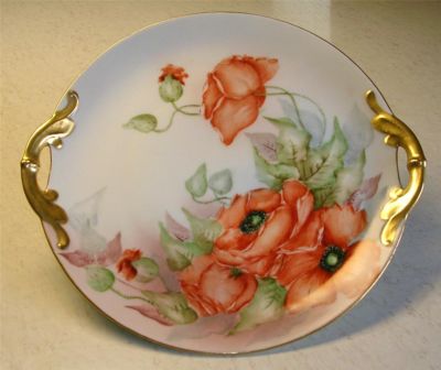 Title (ebay affiliate link): STUNNING ANTIQUE HAND PAINTED POPPIES BAVARIAN JAEGER & CO.TWO HANDLE CAKE PLATE