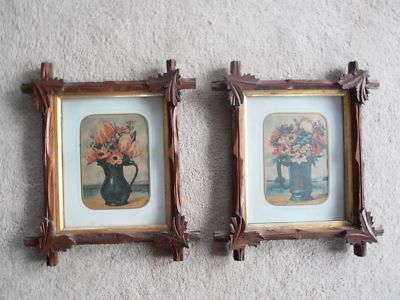 Title (ebay affiliate link): Two (2) Antique Adirondack Camp Leaves & Sticks Style Carved Walnut Wood Frames