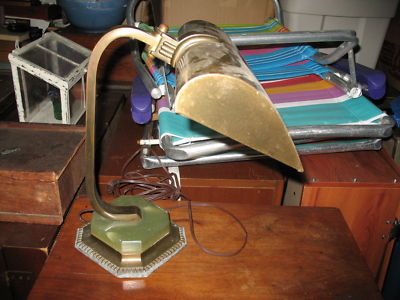 Title (ebay affiliate link): VINTAGE MISSION GREEN ONYX GLASS DESK LAMP BANKERS TABLE LAMP BRASS STUDENT LAMP