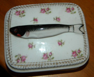 Vintage Porcelain Relief Sardine Box, Rose Floral Design