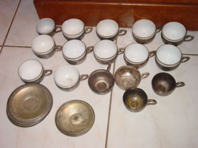Silverplate Cups and Saucers w/ Porcelain Inserts