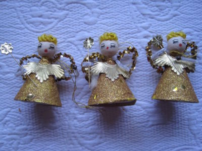 Title (ebay affiliate link): 3 VINTAGE GOLD GLITTER JAPANESE CHRISTMAS ANGEL ORNAMENTS