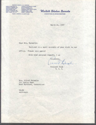 Title (ebay affiliate link): Senator Prescott Bush Amred Services Committee letter to visitor SIGNED 1957