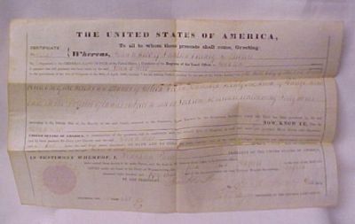Original 1853 President Franklin Pierce Land Grant to J Webb Dunklin County MO