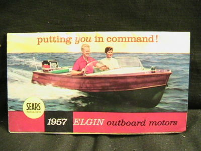 Title (ebay affiliate link): 1957 Elgin Outboard motor folder w/pics, specifications and styles