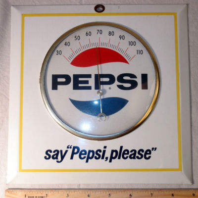 Title (ebay affiliate link): original 1960's PEPSI Cola Thermometer Sign "say Pepsi, please"