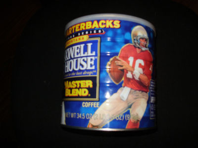 Title (ebay affiliate link): Joe Montana, Maxwell House, collectors series coffee can.