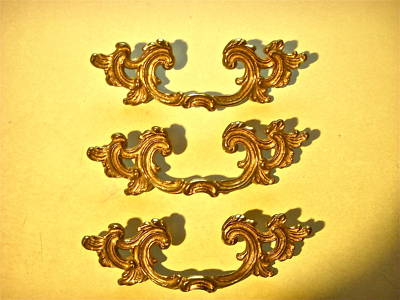 3 ANTIQUE VINTAGE BRASS DRAWER FURNITURE PULLS