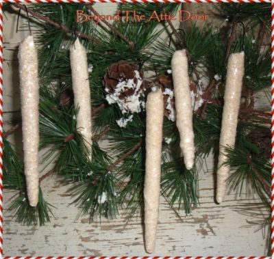 Title (ebay affiliate link): ~EIGHT Primitive ICICLE ORNAMENTS Holiday Decor Bowl Fillers Icicles