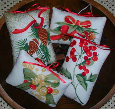 Title (ebay affiliate link): Primitive CHRISTMAS Tucks Fabric Ornies Berries Pine Cones Festive Bowl Fillers