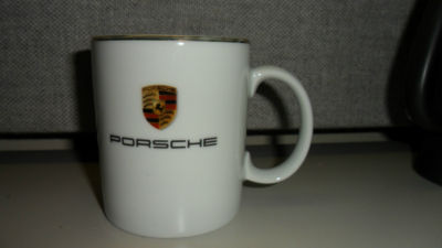 Porsche Ceramic Mug Advertising Coffe Cup Logo Gold Trim Germany Sports Car
