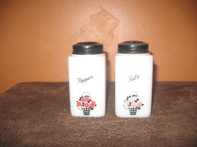 Title (ebay affiliate link): Vintage Tipp City Flower Basket Milk Glass Salt & Pepper Shakers