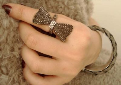 Antique Vintage Bronze Crystal Bowknot Ring Size 6