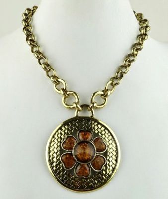 Title (ebay affiliate link): Vintage style jewellery retro art deco antique gold necklace ornate disc
