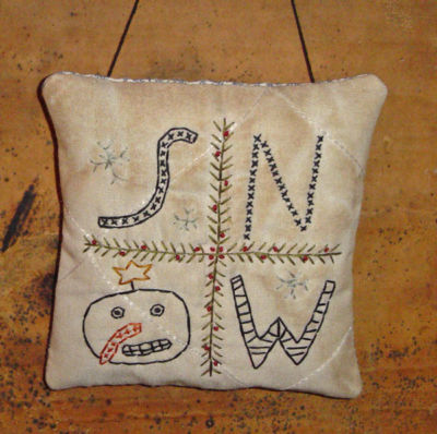 Title (ebay affiliate link): ~SNOWMAN SNOW~ Primitive Stitchery Cupboard Pillow
