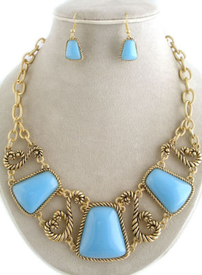 Title (ebay affiliate link): Turquoise & Antique Gold Choker Statement Necklace Set