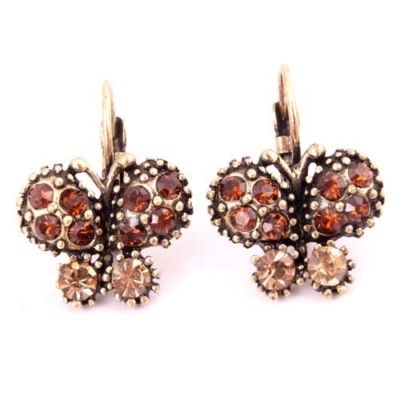 Fashion Pretty Vintage&Antique Crystal Resin Butterfly Stud Earring Jewelry